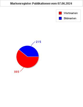 Heute am 07.06.2024 wurden 550 Markeneinträge (335 Wortmarken und 215 Wort-/Bildmarken) publiziert.